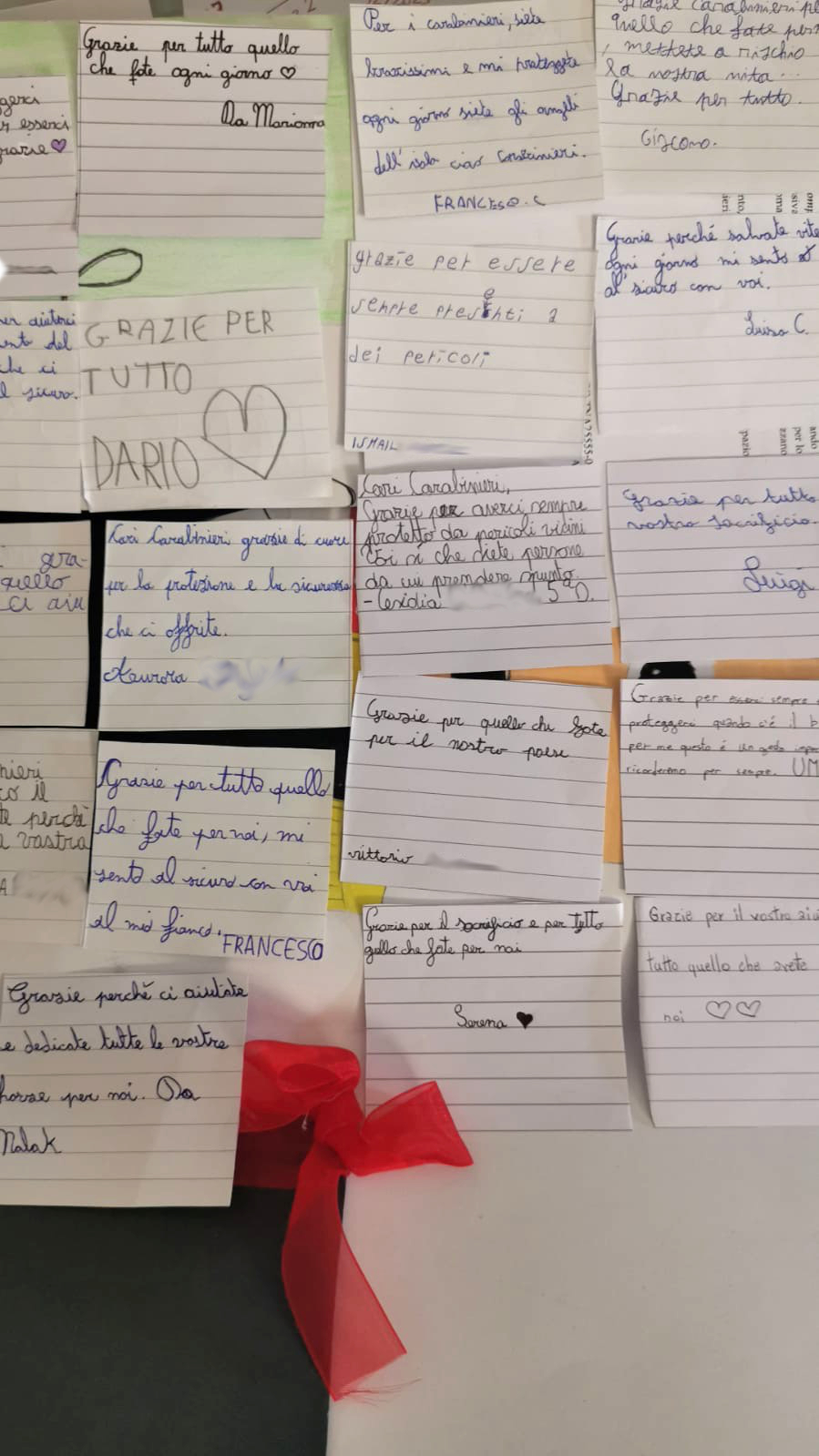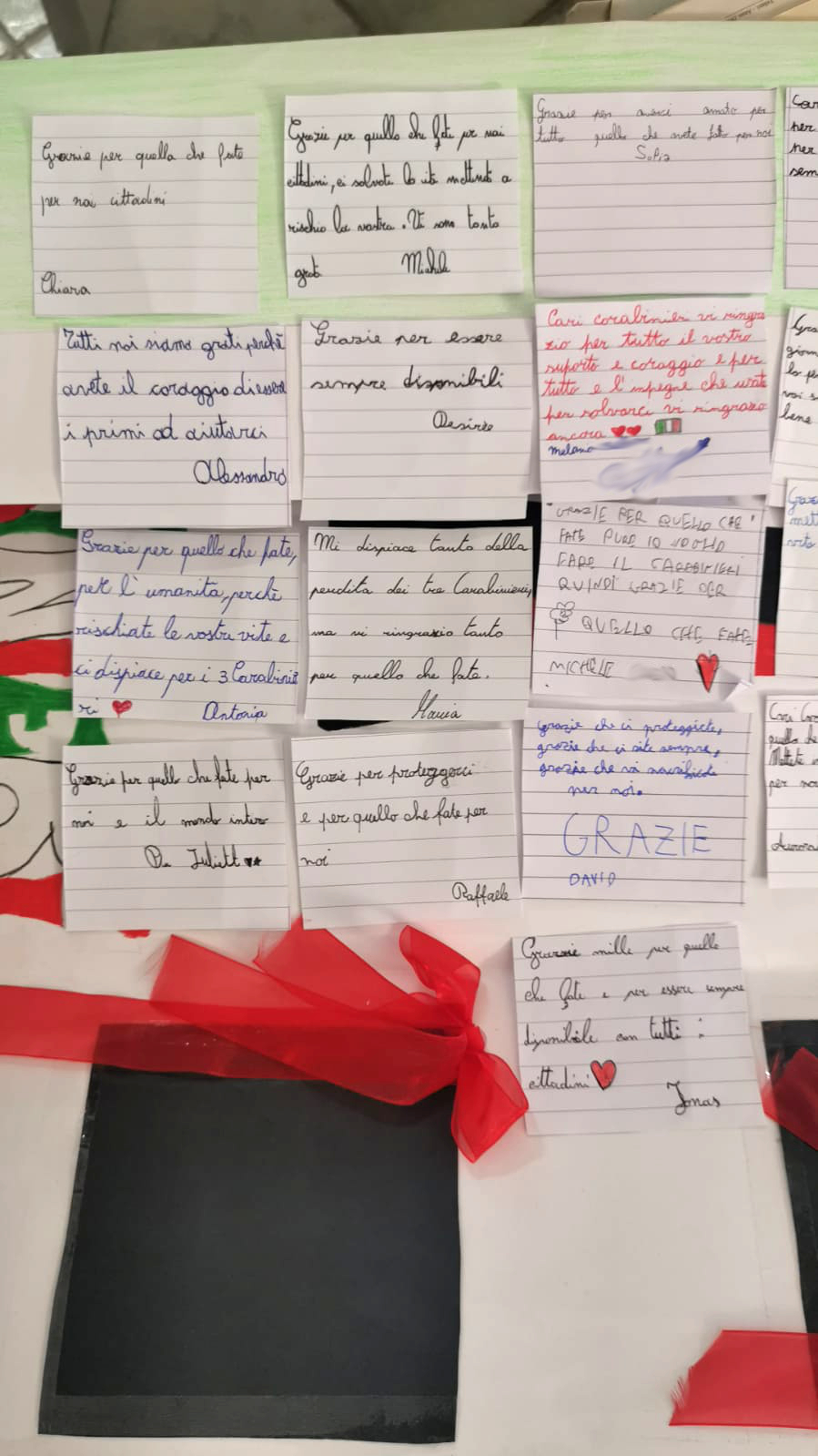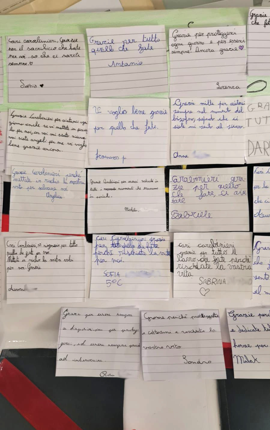 I messaggi dei bambini, ora affissi nella stazione dei Carabinieri di Forio, sono stati letti ad alta voce da alcuni militari e dagli stessi piccoli autori.