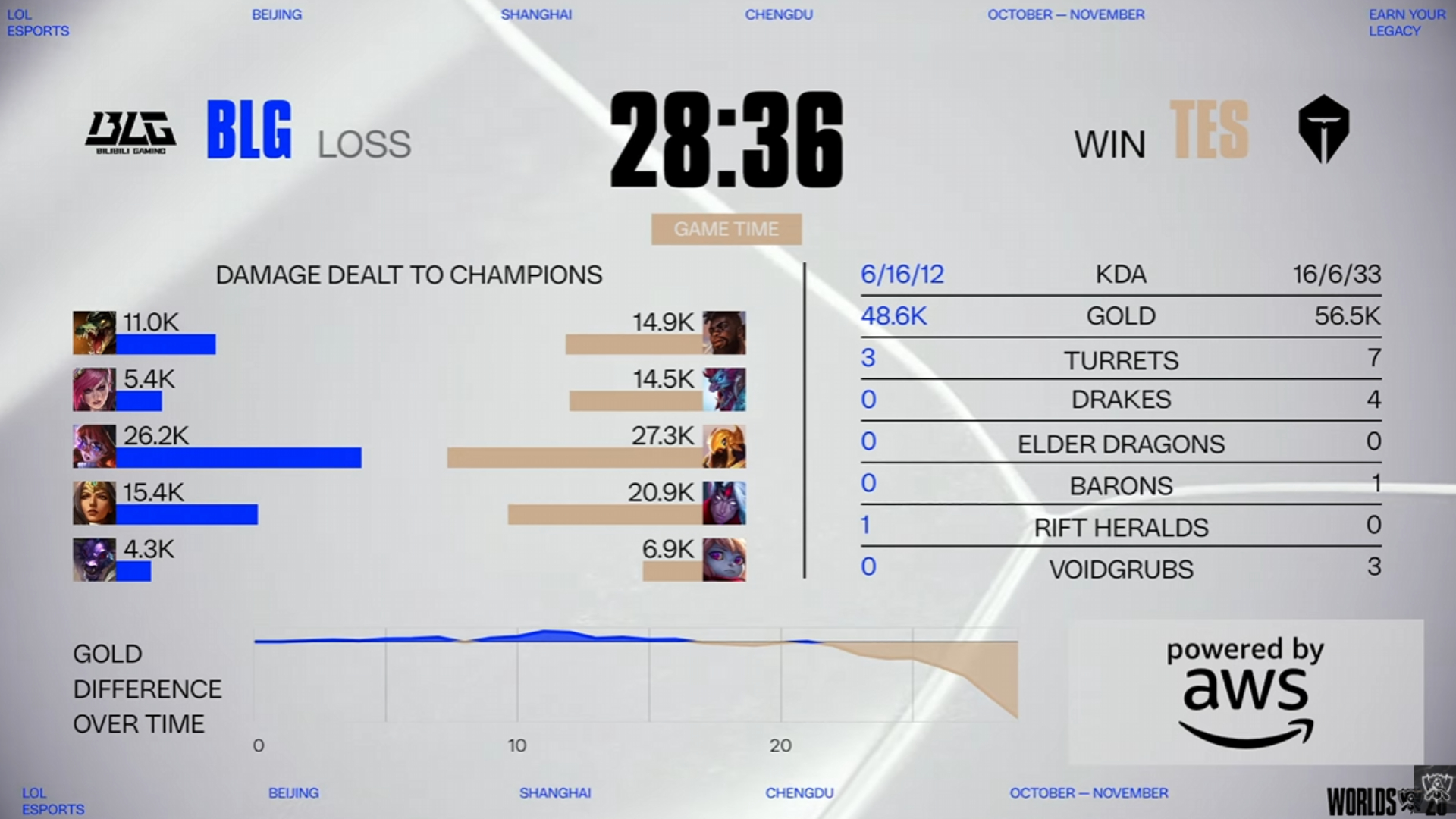 Con i CTBC Flying Oyster (CFO) già qualificata ai quarti dopo la vittoria sui FlyQuest (FLY), solo una tra TES e BLG poteva unirsi agli Anyone’s Legend come rappresentante della Cina ai Playoff.