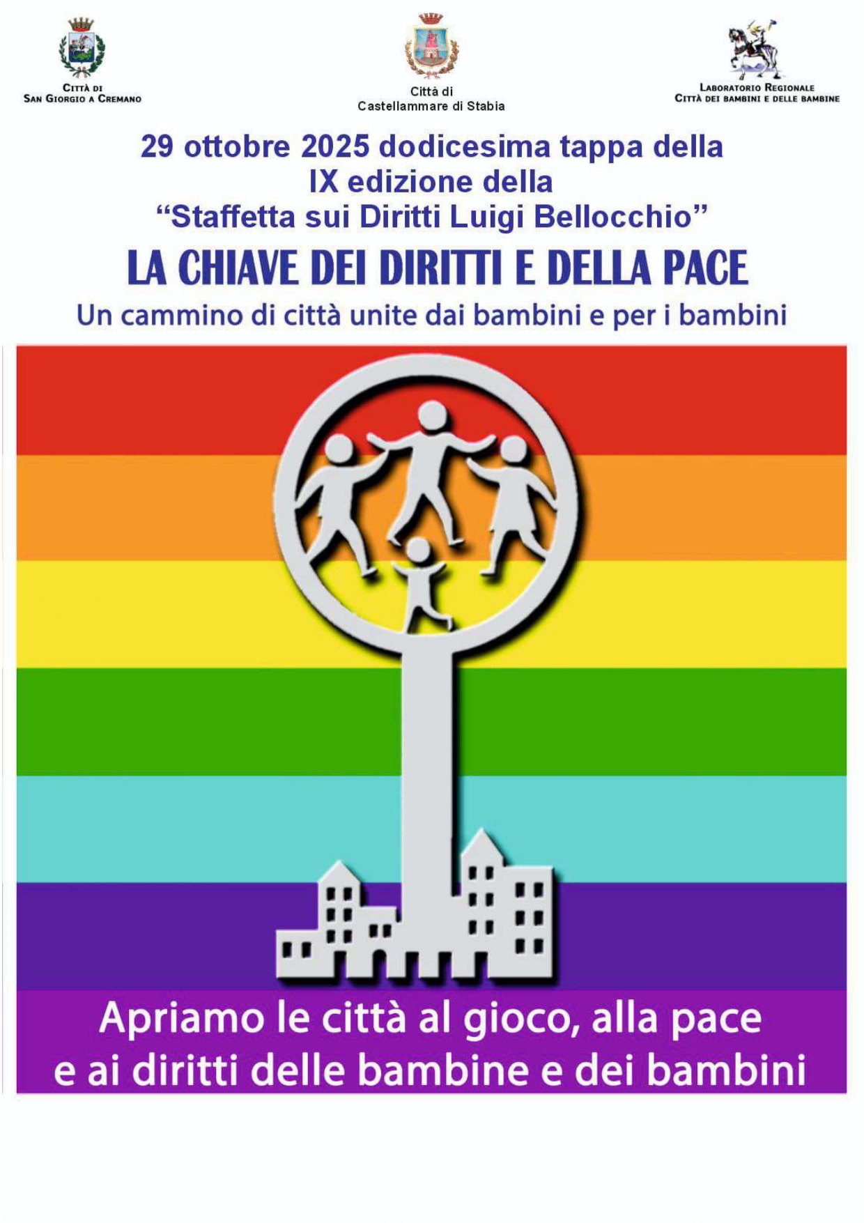 Mercoledì 29 ottobre farà tappa a Castellammare di Stabia la Staffetta sui diritti dei bambini “Luigi Bellocchio”, iniziativa promossa dal Laboratorio Regionale “Città dei bambini e delle bambine”. La manifestazione, partita da San Giorgio a Cremano, sta attraversando i comuni aderenti alla rete, portando con sé un messaggio di pace, solidarietà e partecipazione.