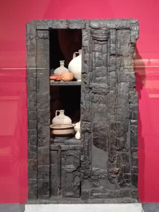 Il trasferimento, particolarmente delicato a causa della fragilità del reperto, ha richiesto una complessa operazione coordinata da restauratori, archeologi e tecnici specializzati, che per un’intera giornata hanno lavorato garantendo la massima sicurezza. Oggi la credenza è collocata al piano ammezzato dell’Antiquarium, all’interno di un allestimento che ripropone fedelmente l’originaria disposizione voluta da Maiuri. Grazie alla documentazione di scavo, è stato possibile ricostruire e riposizionare sul mobile le stoviglie ritrovate nel 1937, restituendo così un’immagine viva e autentica della vita domestica di duemila anni fa.