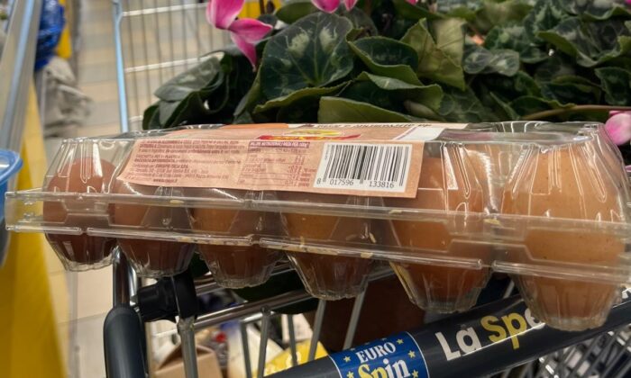Nello scatolone, enorme, sistemato tra i reparti del punto vendita, viene prelevata una maxi confezione di uova, di quelle formato famiglia e posizionata nel carrello per poi proseguire gli acquisti ed arrivare alle casse.