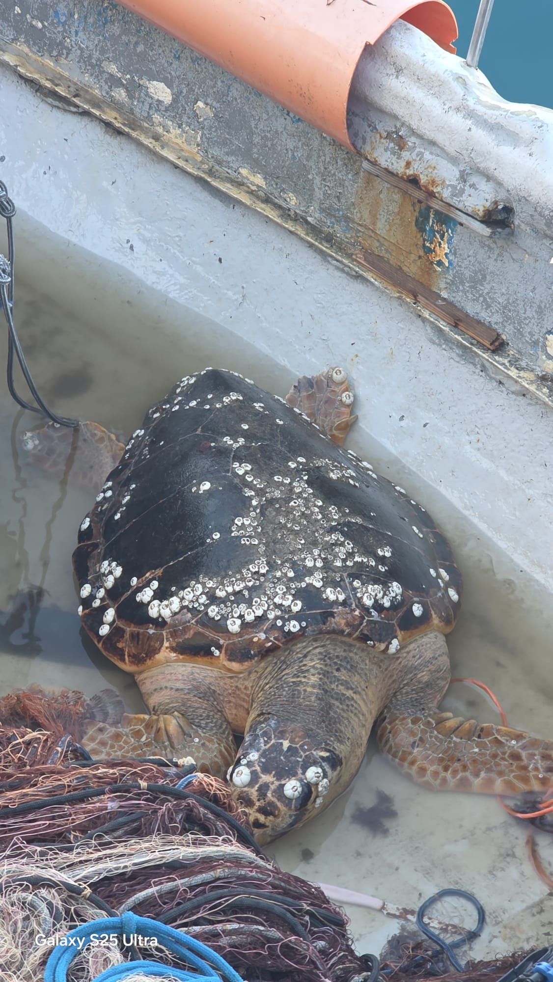L’animale, in evidente stato di affaticamento, è stato soccorso grazie alla collaborazione tra i pescatori e i volontari dell’associazione casertana ELSA ETS, che operano sotto la supervisione della Stazione Zoologica Anton Dohrn nel recupero e nella tutela delle tartarughe marine.