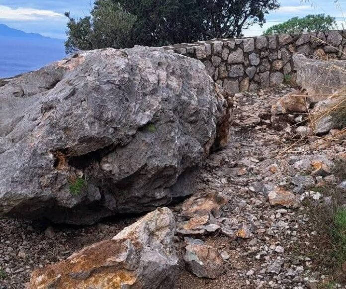 Le piogge torrenziali che hanno colpito la penisola sorrentina nella notte tra sabato e domenica hanno causato uno smottamento di notevole entità lungo l’antica via Minerva, il suggestivo sentiero che collega Massa Lubrense a Punta della Campanella, meta di escursionisti e amanti della natura. Alcuni grossi massi si sono improvvisamente staccati dal costone roccioso sovrastante, rotolando a valle e bloccando completamente la carreggiata.