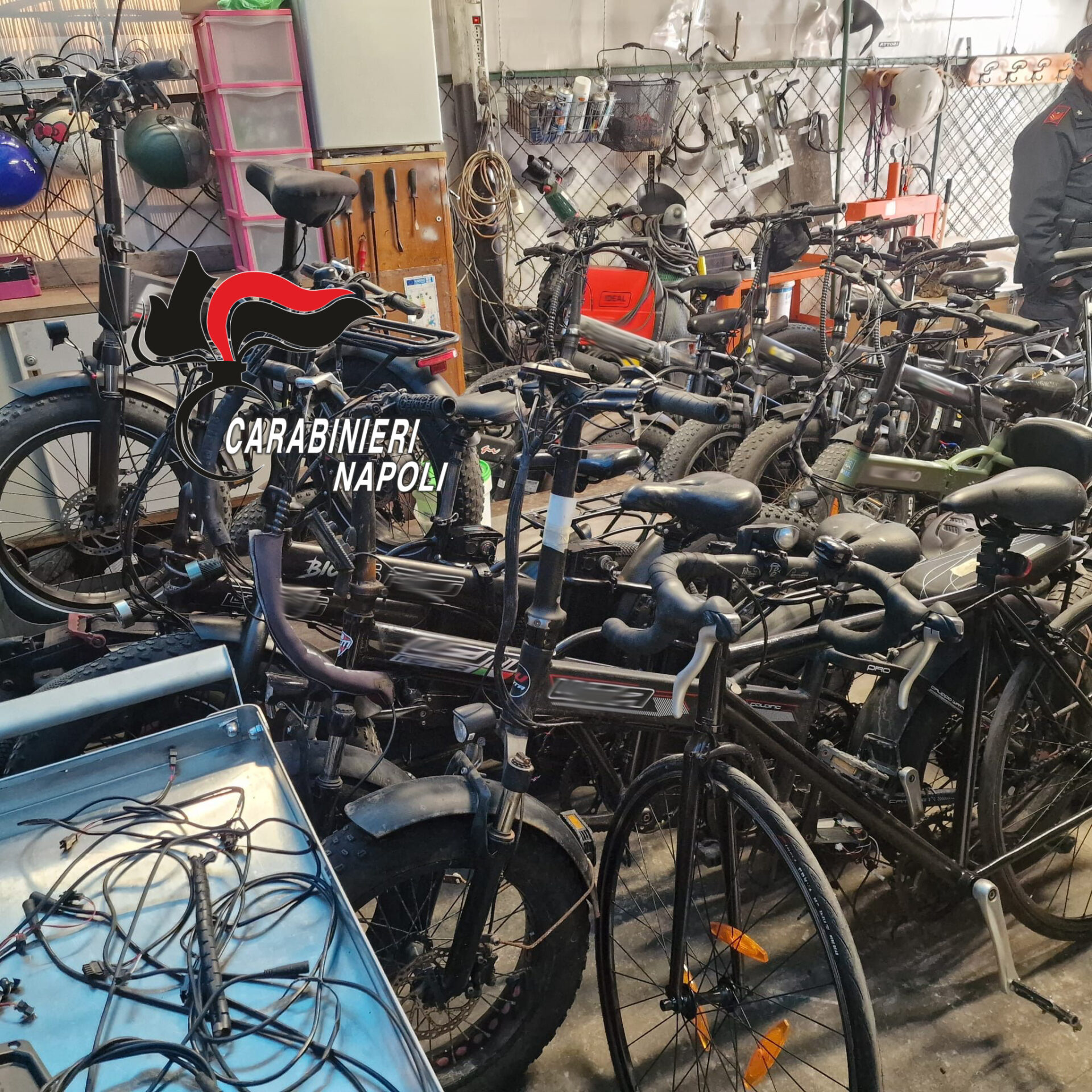 Nel corso delle successive verifiche, i Carabinieri hanno inoltre denunciato un 58enne ischitano, proprietario di un capanno in via De Luca trasformato in un deposito di materiali ricettati. All’interno i militari hanno rinvenuto 177 batterie di scooter e auto, numerosi pezzi di ricambio, telai e 19 biciclette elettriche la cui provenienza è tuttora in fase di accertamento.