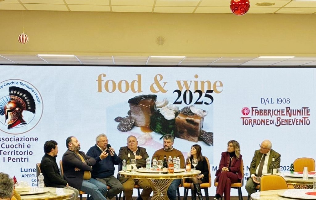 Il grande evento, denominato “Food & Wine 2025”, è stato ospitato dalle storiche Fabbriche Riunite Torrone Benevento S.p.A. in Viale Principe di Napoli 123 a Benevento. Per due giorni le accoglienti sale della struttura sono state trasformate in una kermesse che ha visto nella prima giornata una tavola rotonda che ha accolto gli interventi di personaggi di spicco del mondo del Food and Beverage, imprenditori, esperti del settore e mass media dell’informazione, terminata con una deliziosa cena di Gala che, organizzata dallo Chef Teo Barbato e dallo Chef Italo Schipani, ha avuto come teatro la Sala Rosa di Fabbriche Riunite Torrone Benevento. Nella giornata successiva con la supervisione dello Chef Italo Schipani si è sviluppata una Masterclass con momenti formativi, guidati da noti maestri dei vari settori di cui la cucina italiana detiene elogi nel mondo.