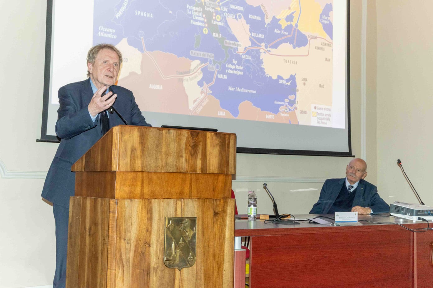 L’accogliente aula intitolata al Prof. Francesco De Sanctis della Scuola Militare “Nunziatella” ha fatto da cornice alla lectio magistralis “verso il mondo di domani” svolta dal noto giornalista e direttore della rivista di geopolitica Lucio Caracciolo, con la straordinaria partecipazione del Generale Giuseppe Cucchi, sugli scenari geopolitici contemporanei e futuri.