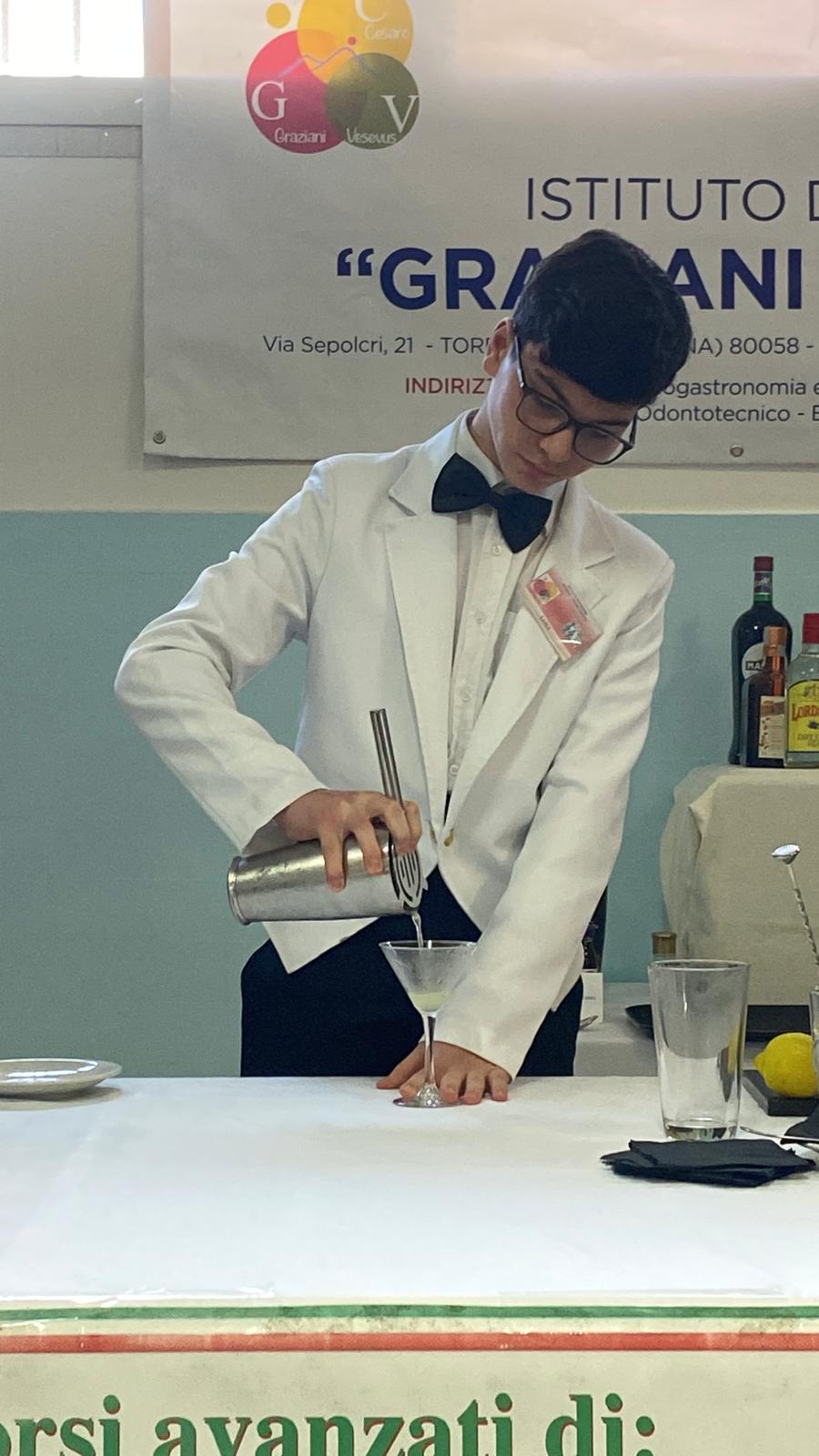 Si è conclusa questa mattina la seconda edizione del concorso interno “Art of Mixology”, ospitata dall’Istituto “Graziani–Cesaro Vesuvio” di Torre Annunziata. L’iniziativa, promossa dai docenti di sala e vendita – in particolare dalla prof.ssa Tiziana Provenza e dal prof. Palmerino Sorrentino – ha visto protagonisti numerosi studenti, impegnati in una sfida all’insegna della creatività e della tecnica, tra shaker e miscelazioni.