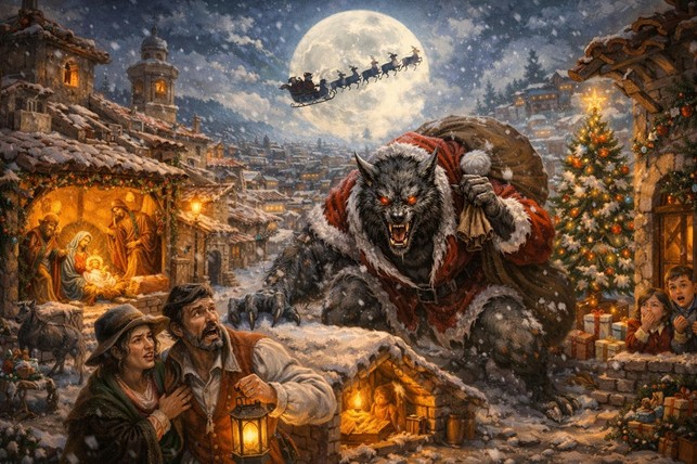 Nei racconti natalizi della tradizione, figure come il diavolo, le masche (streghe del sud Italia) e il lupo mannaro si intrecciano con la nascita di Cristo, creando un tessuto narrativo in cui la paura, l’ignoto e il desiderio di protezione si riflettono nelle storie tramandate di generazione in generazione.