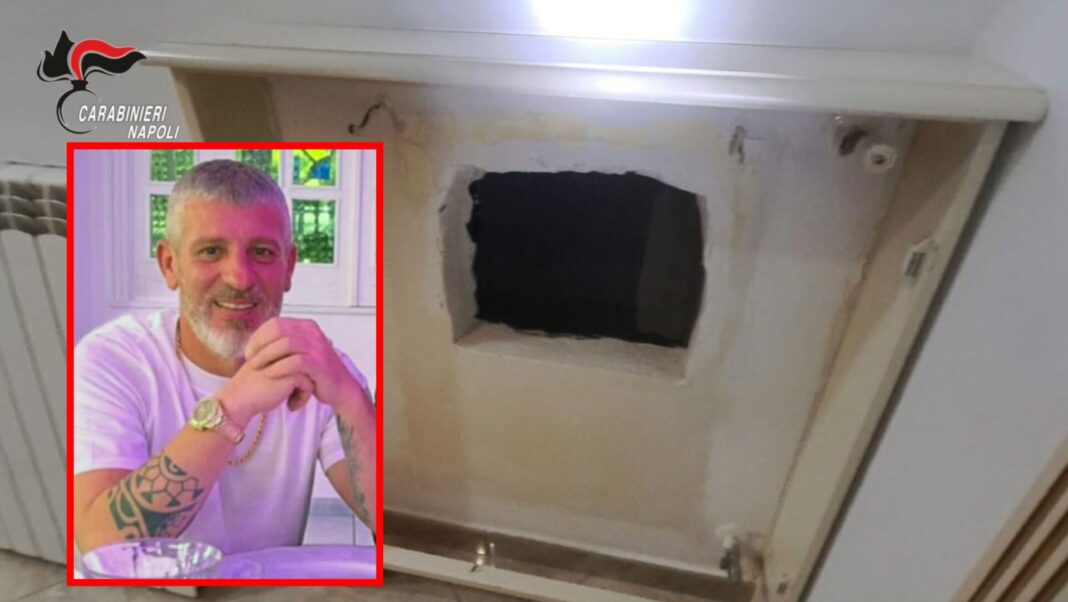 L’uomo è stato rintracciato all’interno di un ingegnoso nascondiglio in muratura, ricavato in un appartamento sottoposto a perquisizione. Il rifugio, realizzato per eludere eventuali controlli, è stato individuato dai militari del Nucleo Investigativo CC di Napoli, che hanno proceduto all’arresto senza che si registrassero incidenti.