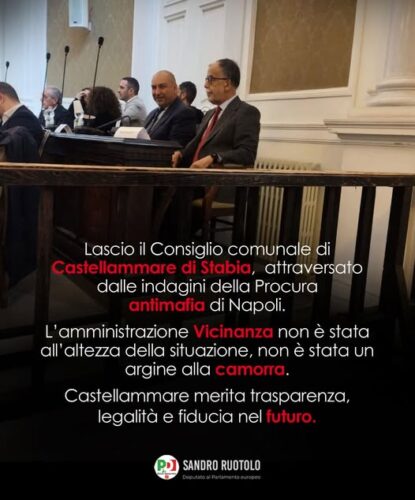 Per coerenza con il mandato ricevuto, per rispetto verso la città e verso la mia storia personale e istituzionale, ho quindi rassegnato le dimissioni da consigliere comunale di Castellammare di Stabia. La lotta alla camorra non ammette ambiguità. Io continuerò questa battaglia, senza compromessi, come ho sempre fatto, dentro e fuori le istituzioni. Castellammare merita trasparenza, legalità e fiducia nel futuro».
