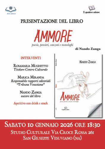 Sala gremita e grande partecipazione al Museo MATT di Terzigno per la presentazione di “Ammore”, il libro di Nando Zanga che ha saputo coinvolgere ed emozionare il pubblico presente, registrando il tutto esaurito.