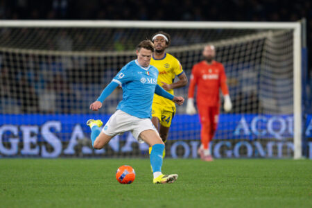 Il Napoli non molla. Conte cambia, ridisegna l’assetto, libera Di Lorenzo con l’ingresso di Marianucci. La mossa paga. All’82’ arriva il meritato pareggio: cross dalla trequarti di Marianucci, inserimento del capitano e girata vincente per il 2-2.
