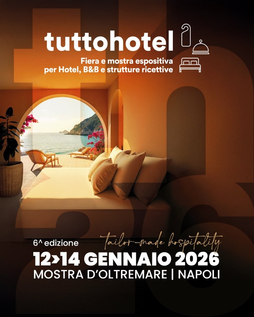 C’è grande attesa per il taglio del nastro della 6a edizione di “Tuttohotel” che, alla Mostra d’Oltremare di Napoli, lunedì 12 gennaio 2026, aprirà i battenti alle ore 10.30 per poi chiuderli mercoledì 14 gennaio.