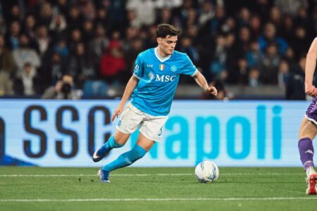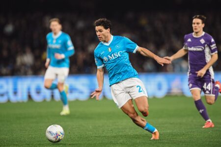 Il Napoli continua a spingere, trascinato dalla fisicità e dalla mobilità di Højlund, autentico riferimento offensivo. Al 23’ il danese va vicinissimo al 2-0: resiste al contatto, calcia a botta sicura, ma Comuzzo salva sulla linea dopo aver retto l’urto. È un momento di dominio azzurro, in cui la Fiorentina fatica a uscire dalla propria metà campo.