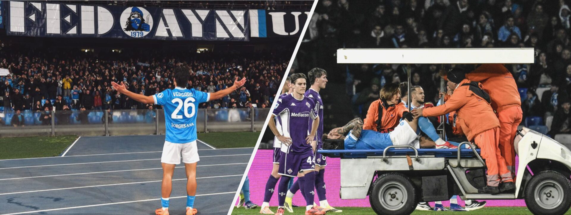 Subito dopo, però, arriva il momento più drammatico della serata. Il ginocchio sinistro di Giovanni Di Lorenzo cede. Il capitano azzurro resta a terra, il dolore è evidente, l’uscita in barella gela lo stadio. Il Napoli, già falcidiato dalle assenze, perde uno dei suoi pilastri assoluti. Le prime sensazioni parlano di un possibile infortunio grave, con il timore di uno stop lungo che potrebbe condizionare l’intera stagione. Conte è costretto a rivedere l’assetto, ma la squadra non si disunisce.