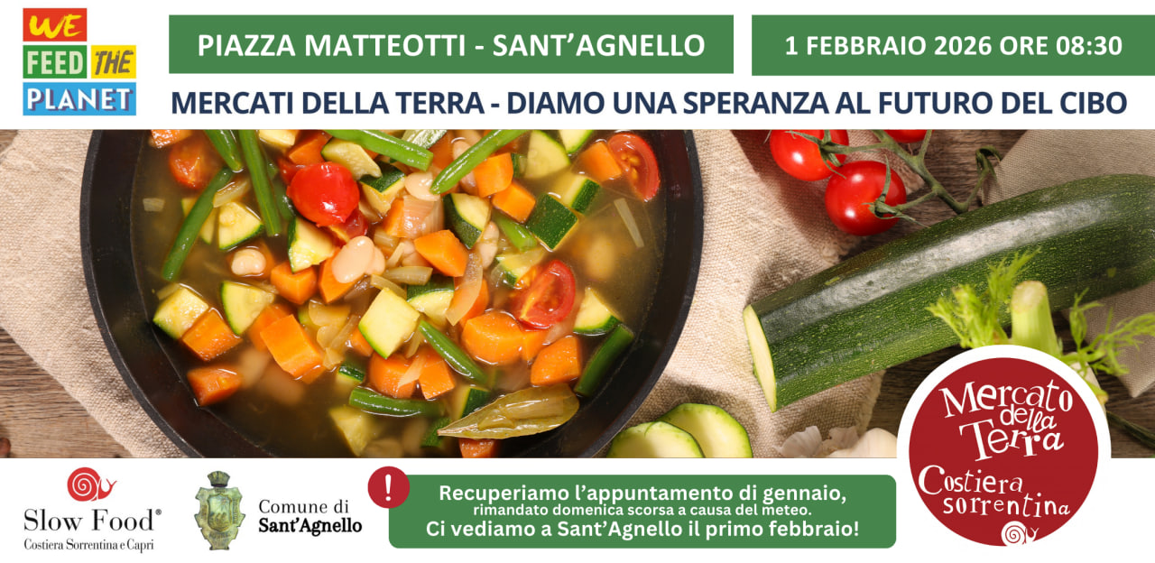 Il Mercato della Terra Slow Food torna a Sant’Agnello domenica 1 febbraio 2026, recuperando l’appuntamento rinviato la scorsa settimana a causa delle avverse condizioni meteo.