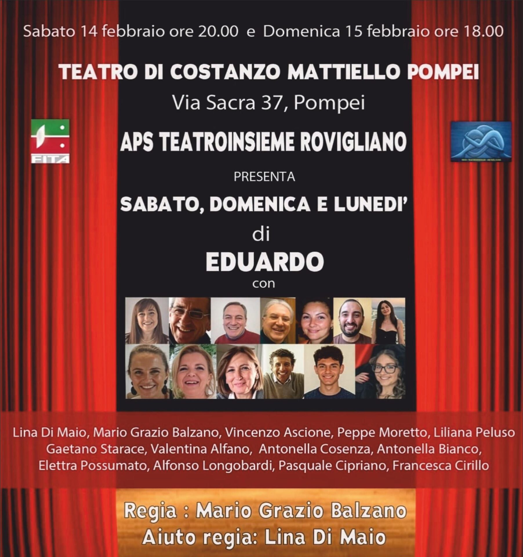 Il sipario del Teatro di Costanzo Mattiello di Pompei è pronto ad aprirsi su uno dei testi più celebri e amati di Eduardo De Filippo. Sabato 14 febbraio alle ore 20.00 e domenica 15 febbraio alle ore 18.00, il palcoscenico di via Sacra 37 ospiterà Sabato, domenica e lunedì, portato in scena dall’APS Teatroinsieme Rovigliano.