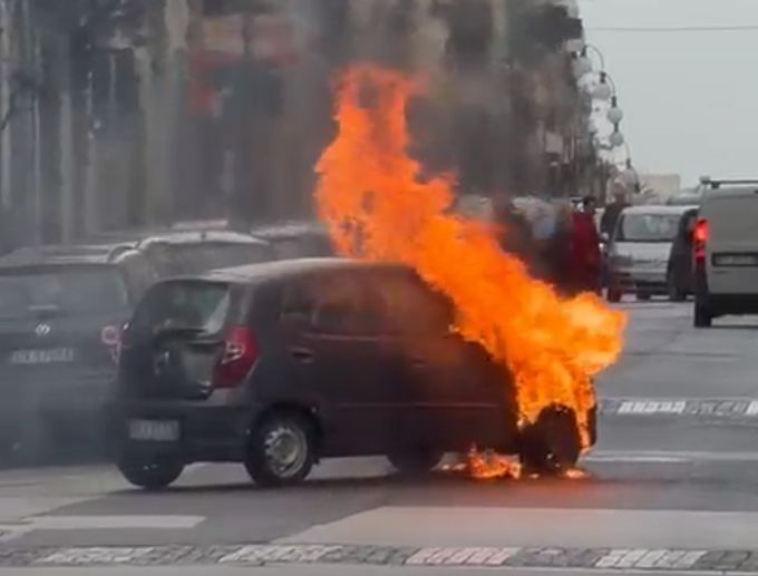 Paura nel primo pomeriggio a Torre Annunziata, dove un’auto è stata improvvisamente avvolta dalle fiamme all’incrocio tra corso Umberto I e via Gino Alfani, in una delle zone più trafficate della città. L’episodio ha generato momenti di forte apprensione tra residenti, passanti e commercianti, richiamati da una densa colonna di fumo nero visibile anche a distanza.