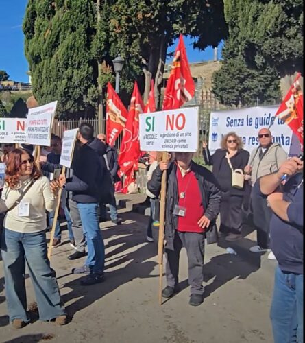 Le guide sostengono che la decisione della direzione sia arrivata senza un confronto preventivo e che abbia cancellato un sistema di regolamentazione consolidato. In piazza sono comparsi striscioni con la scritta “Giù le mani dalle guide” e manifesti funebri dal tono ironico, simbolo di quella che gli operatori considerano una penalizzazione della categoria.