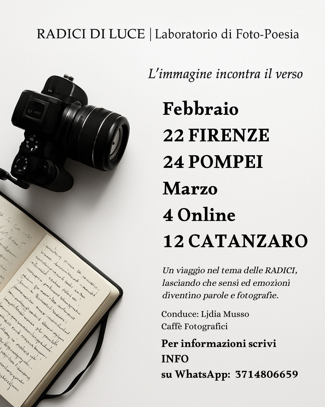 Martedì 24 febbraio si terrà il laboratorio “Radici di Luce”, un’esperienza che va oltre il tradizionale corso di fotografia per abbracciare il concetto di “Foto-Poesia”.