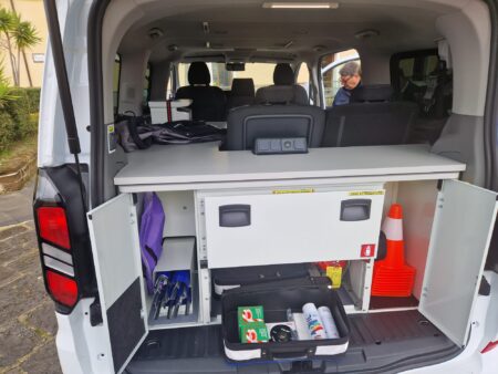 Il mezzo è giunto a palazzo Baronale per permettere al sindaco Luigi Mennella, insieme al dirigente Gennaro Russo, di poter avere contezza delle funzionalità del mezzo. L’ufficio mobile arriva a Torre del Greco nell’ambito di un’attività di potenziamento delle dotazioni tecniche destinate alla polizia municipale, attività che nelle prossime settimane porterà tante altre novità: la prima è l’arrivo di un secondo furgone, che avrà le stesse caratteristiche di quello già giunto al Comune. Inoltre, al comando di largo Costantinopoli arriveranno anche sei moto Honda NCX 750, un furgone per la segnaletica e, a seguito del posizionamento di un apposito ripetitore nella zona del Monte Faito, anche una cinquantina di trasmittenti radio, in modo da consentire agli agenti di essere sempre collegati tra loro e soprattutto con la sala operativa.