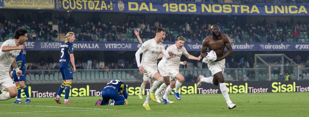 Sul ribaltamento di fronte arriva l’ultimo angolo. Giovane mette un pallone teso in area, Lukaku gira di prima intenzione e sorprende un Montipò non perfetto. È il 2-1 al 96’, la rete che decide la partita e fa esplodere il settore ospiti.