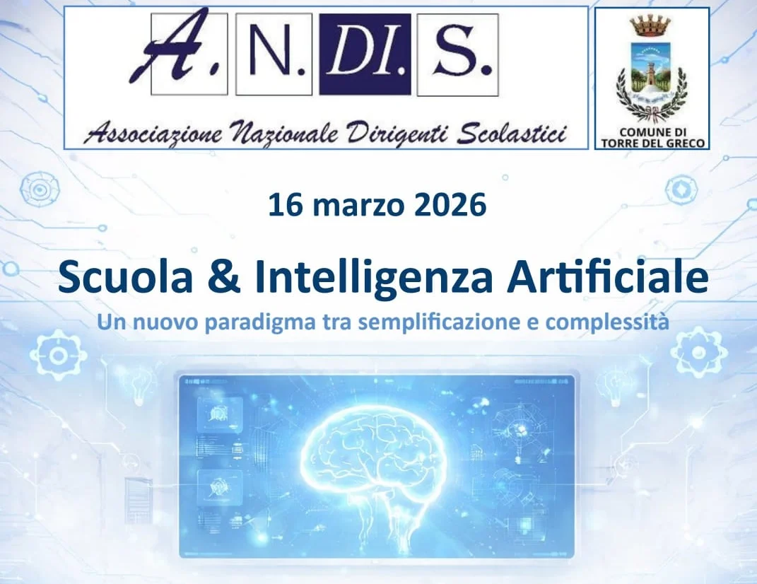 “Scuola & intelligenza artificiale. Un nuovo paradigma tra semplificazione e complessità”. È questo il titolo dell’iniziativa formativa promossa dalla sezione campana dell’Associazione Nazionale Dirigenti Scolastici (Andis), in programma lunedì 16 marzo a Torre del Greco.