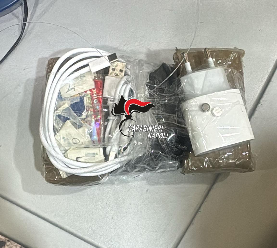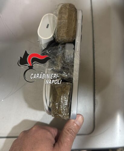 Rinvenuti e sequestrati 200 grammi di hashish, 1 telefono cellulare, 4 pennette usb, 2 mini telefoni, 16 sim, dei carica batterie e cavetti vari. Indagini in corso da parte dei carabinieri.