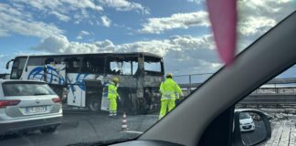 Autobus turistico in fiamme sulla Tangenziale di Napoli: momenti di paura