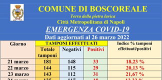 Boscoreale, Covid-19: ancora in crescita i contagi, 421 gli attuali positivi