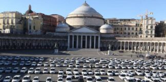 Contro i Dpcm, i tassisti napoletani con le auto in Piazza Plebiscito