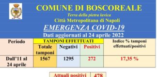 Boscoreale, Covid-19, in calo i contagi. Gli attuali positivi sono 478
