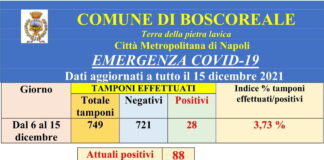 Boscoreale, Covid-19: in discesa l’indice di positività e lieve risalita degli attuali positivi