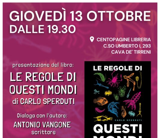 Cava de’ Tirreni, libreria centopagine: giovedì 13 ottobre presentazione del libro “Le regola di questi mondi” di Carlo Sperduti