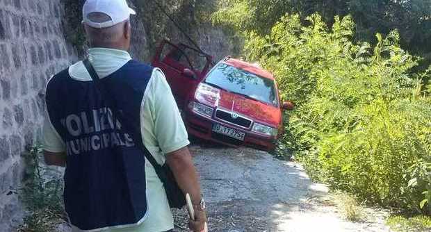 Tragedia evitata sul Vesuvio, turisti tedeschi con l’auto in bilico su un burrone. Salvati dalla municipale