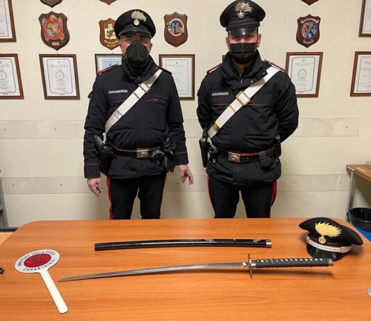 Ottaviano: 30enne in strada con una katana da samurai, si arrende non appena vede i Carabinieri
