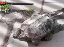 Pomigliano, tartaruga azzannatrice in villa comunale: intervengono i carabinieri