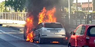 Paura in centro a Pompei, auto prende fuoco: si teme l’esplosione. Intervento provvidenziale di Municipale e Vigili del Fuoco