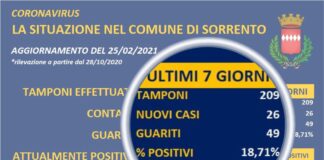 Sorrento coronavirus, nessun nuovo positivo e 5 guariti, ancora un vota i dati sulle percentuali sono imprecisi
