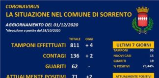 Sorrento, coronavirus, due nuovi positivi e nessun nuovo guarito