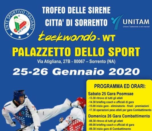 Sorrento, al via il torneo internazionale di Taekwondo “Terra delle Sirene”