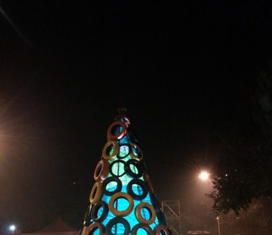 Tocco d’arte a Striano: l’albero di Natale fatto coi copertoni