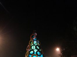 Tocco d’arte a Striano: l’albero di Natale fatto coi copertoni