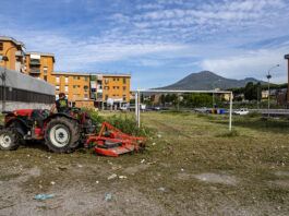 Boscoreale, ripulito il campo di calcio: al via i lavori grazie alla sinergia tra Comune, Parco e privati
