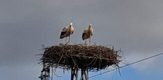 E’ arrivata la cicogna bianca che ha raggiunto il suo compagno sul nido di Sala Consilina