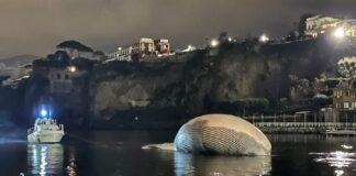 Il corpo della Balenottera individuato a 20 metri di profondità nel porto di Sorrento – VIDEO –