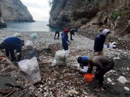 Rifiuti sulla spiaggia di Crapolla, volontari stranieri ripuliscono l’incantevole Fiordo